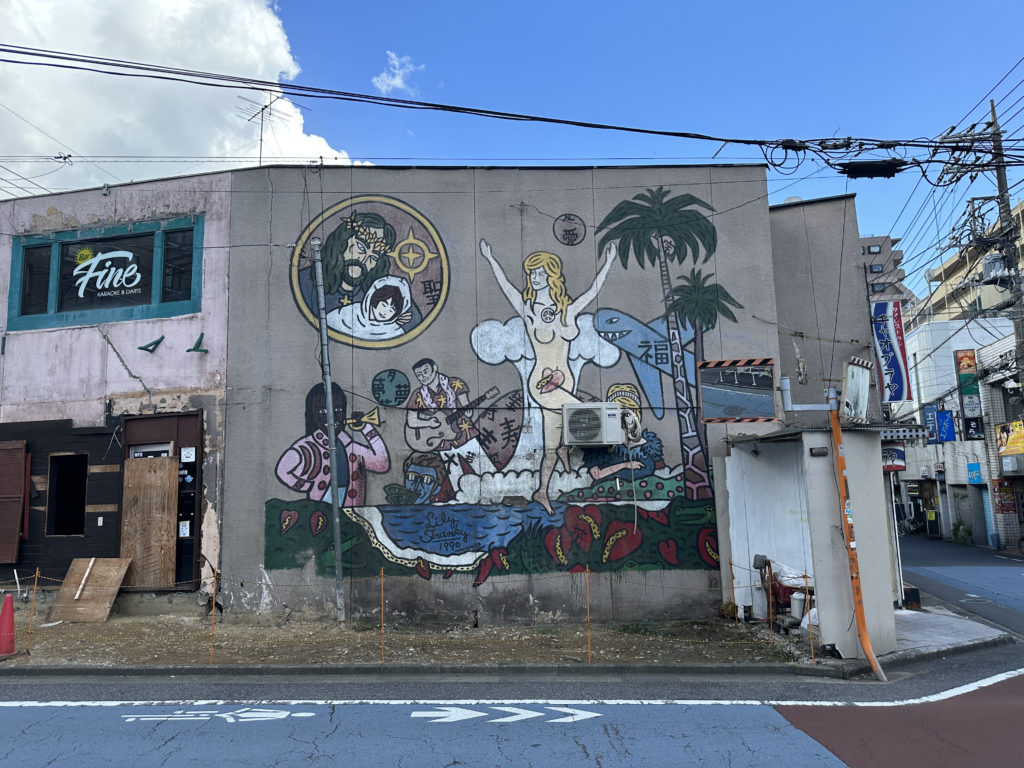リリー・フランキーが描いた壁画、エディーズのヒップホップアート、スナックの壁に描かれたチマチョゴリの少女など、ストリートアートが楽しめる。