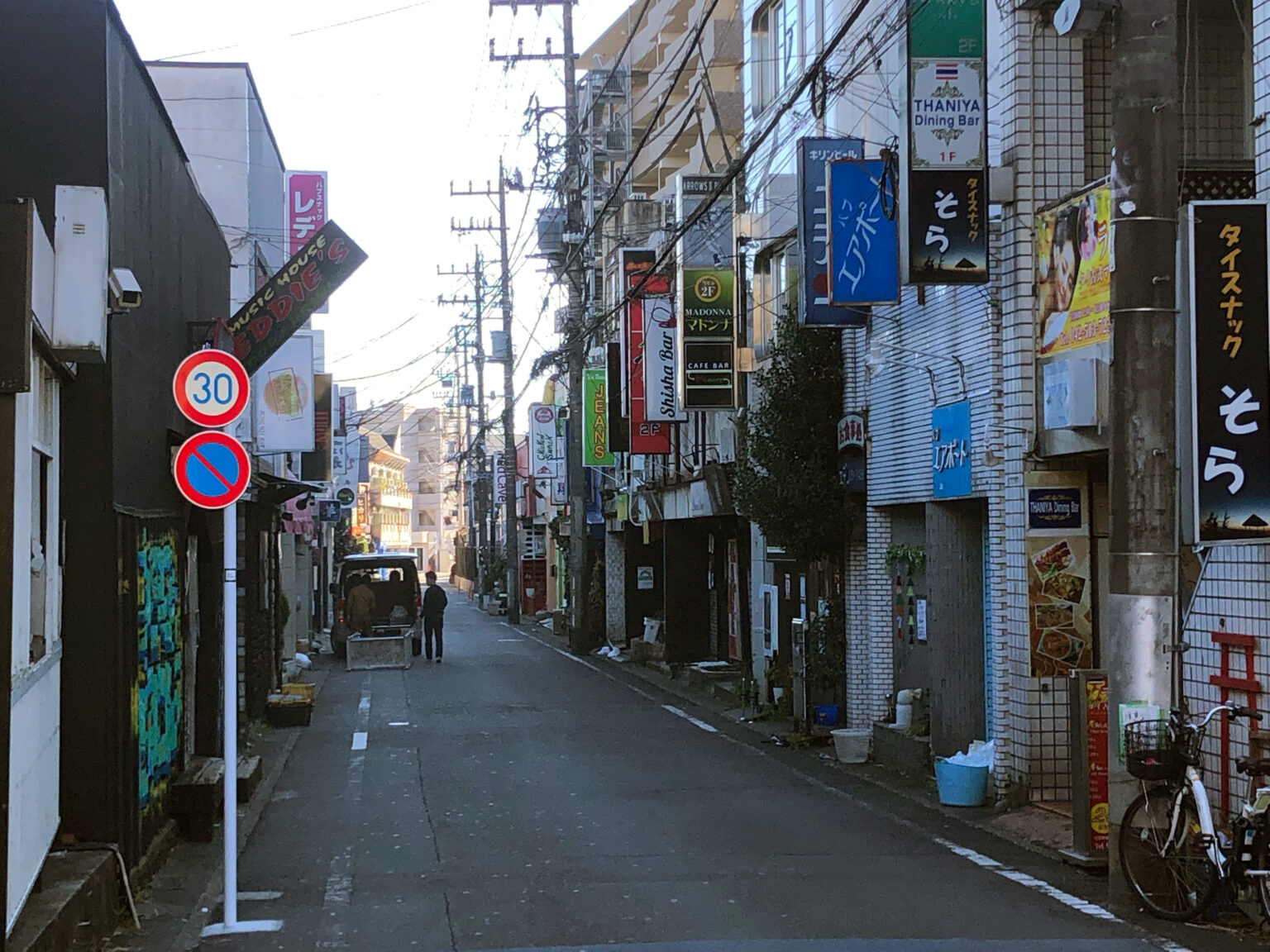 赤線の裏路地を歩いていると、木造アパートの階段から強面のおじさんがスマホに怒鳴りながら降りてきたり、コインパーキングの壁が一面落書きされていたり、廃業した飲食店から出た廃材がそのまま放置してあったりする。カオスといえばカオスだし、気取らない町といえば気取らない町である。
