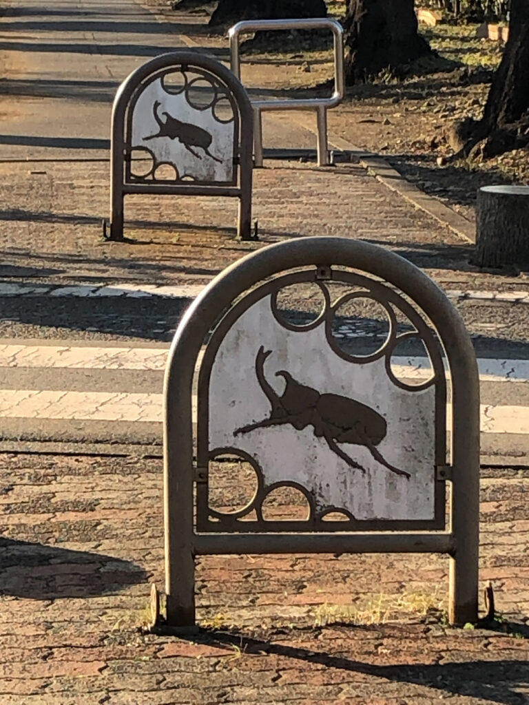 野山北公園自転車道では、カブトムシ♂がデザインされた車止めをよく見かけた。後日気になってGoogleで調べてみたのだが、そこまでカブトムシを推す理由がわからない。