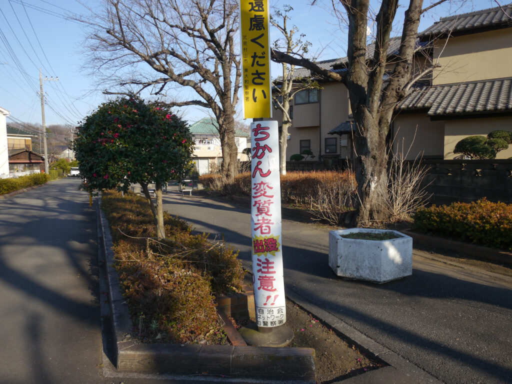 そこに広がる閑静な住宅街に「ちかん変質者出没注意」と看板があった。