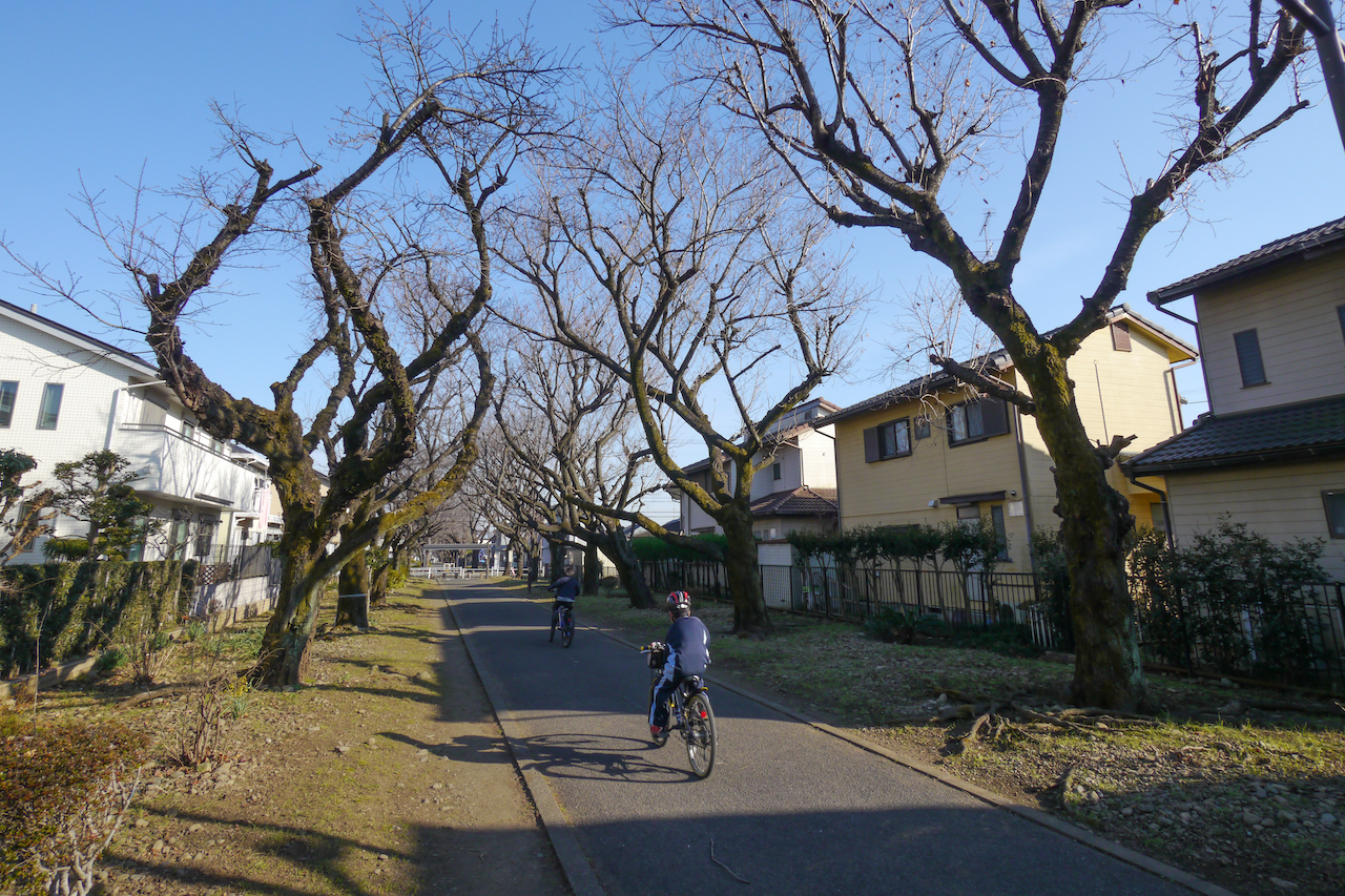 地面に凹凸があり、車止めがあり、また歩行者も多めなのでロードバイクには向かないが、クロスバイクでポタリングするには最高だ。沿道には、約300本の桜が植えられている。今はつぼみも芽吹いていないが、春は満開の桜でさぞ美しいだろうと想像させる。