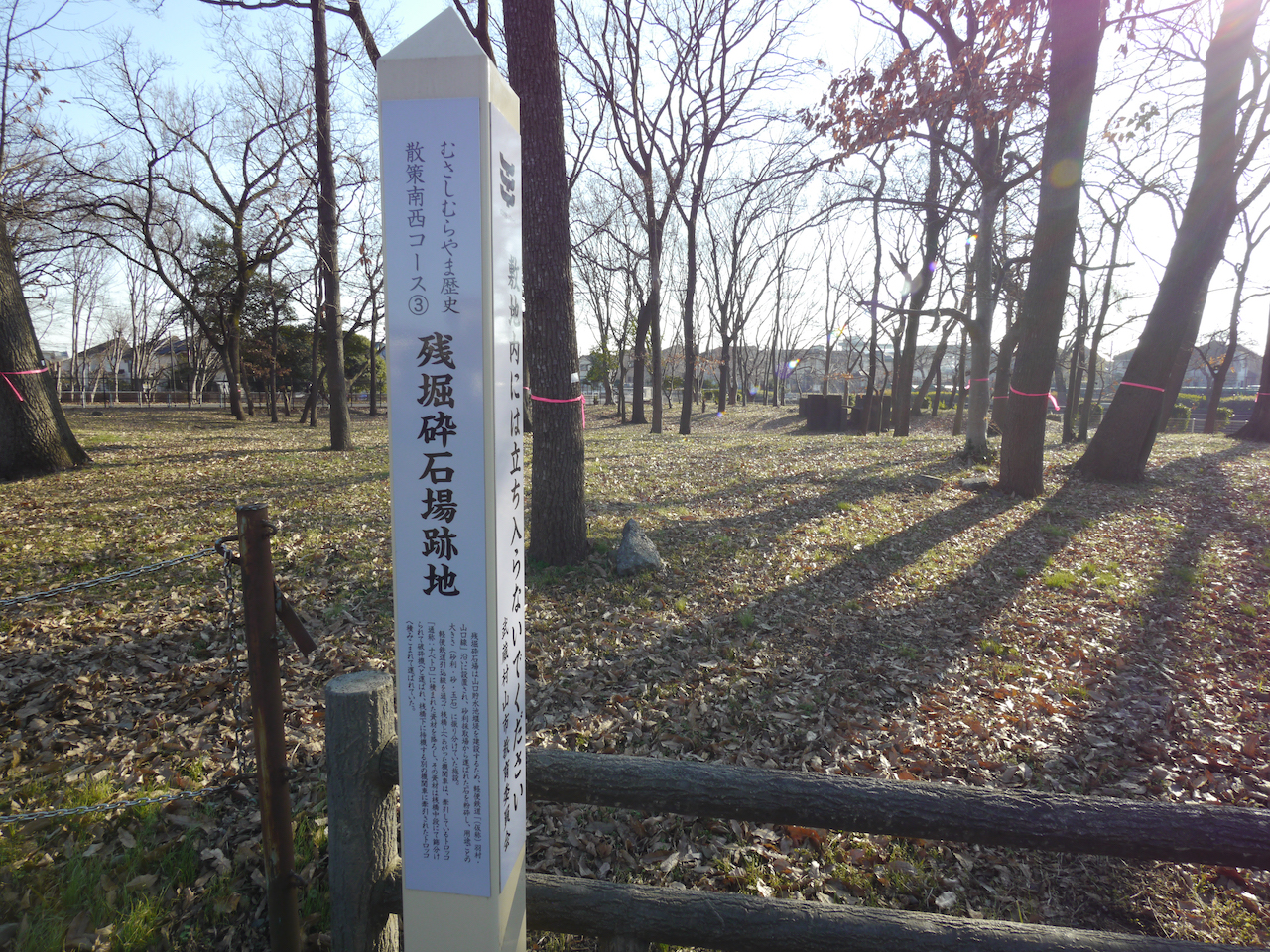残堀川と交差するあたりに、「残堀砕石場跡地」と書かれた杭が打ってある。