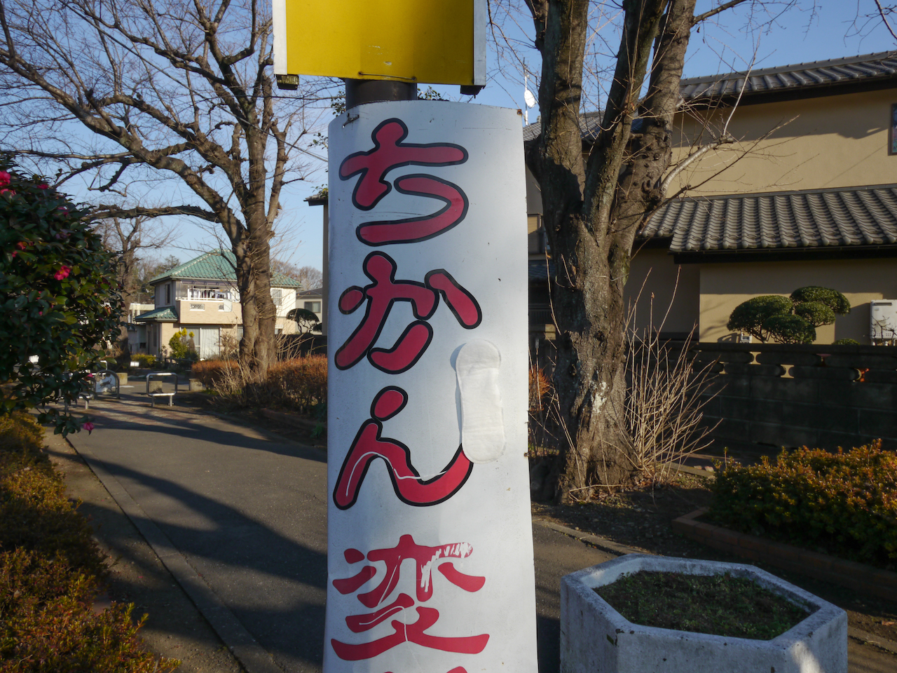 よく見ると、「ちかん」の「ん」の字のあたりに生理用ナプキンが貼りつけてあった。