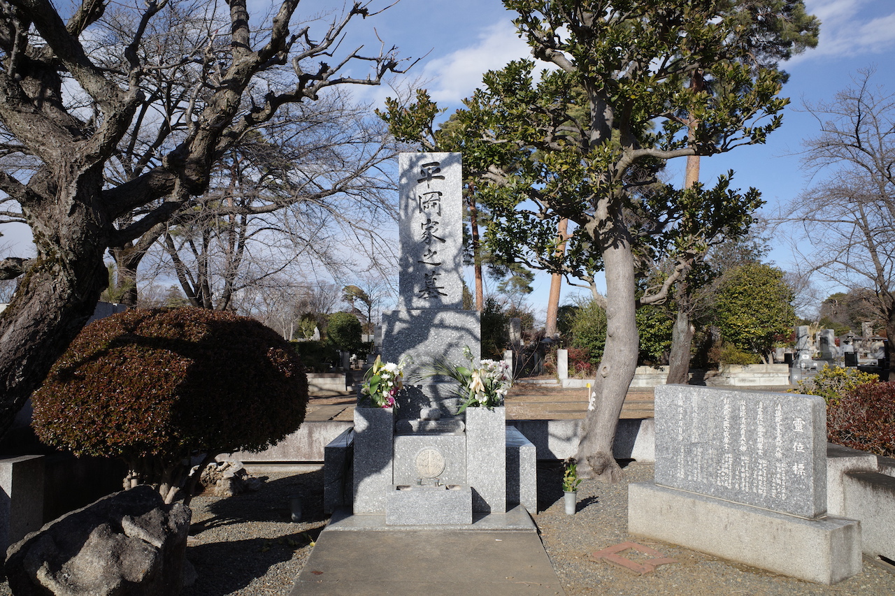 多磨霊園には、三島由紀夫の墓がある。本名は平岡公威。