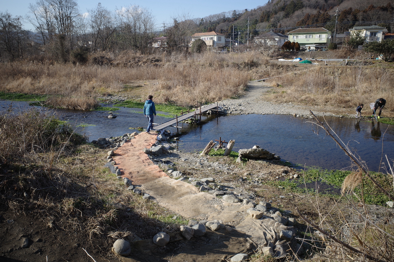 現在はパイプと足場板を組み合わせた簡素な作りだが、2019年までは(手作り感はあるものの)なかなかしっかりした人道橋だった。東京府南多摩郡恩方村が管理していた昭和初期から中期にかけては、1トン前後の小型自動車なら通れるほど立派なものだったようだ。