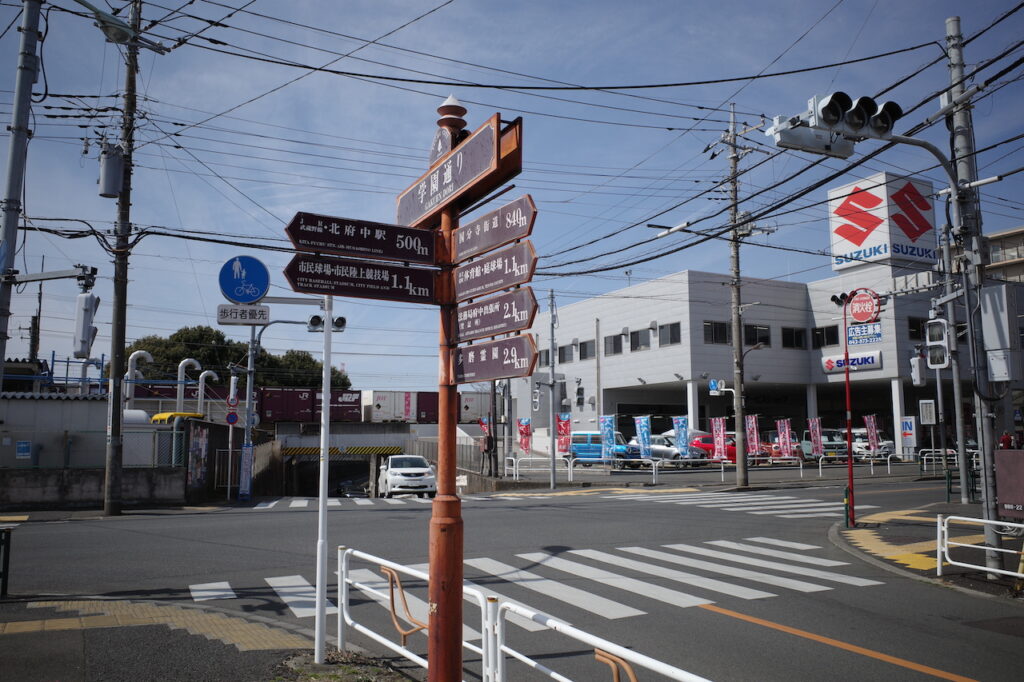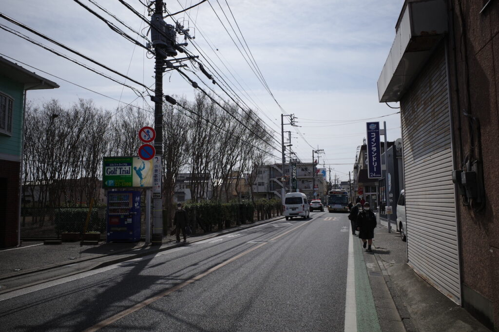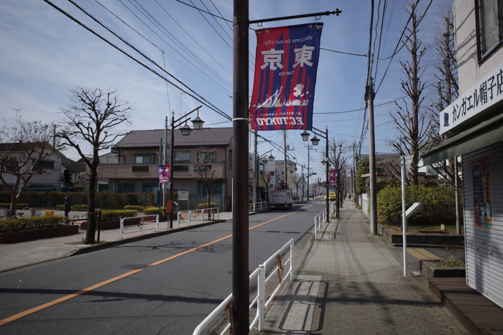 国分寺街道は住宅街とスーパー、学校が並ぶ静かな通りだ。やがてけやき並木通りに接続し、京王線府中駅前につながる。
