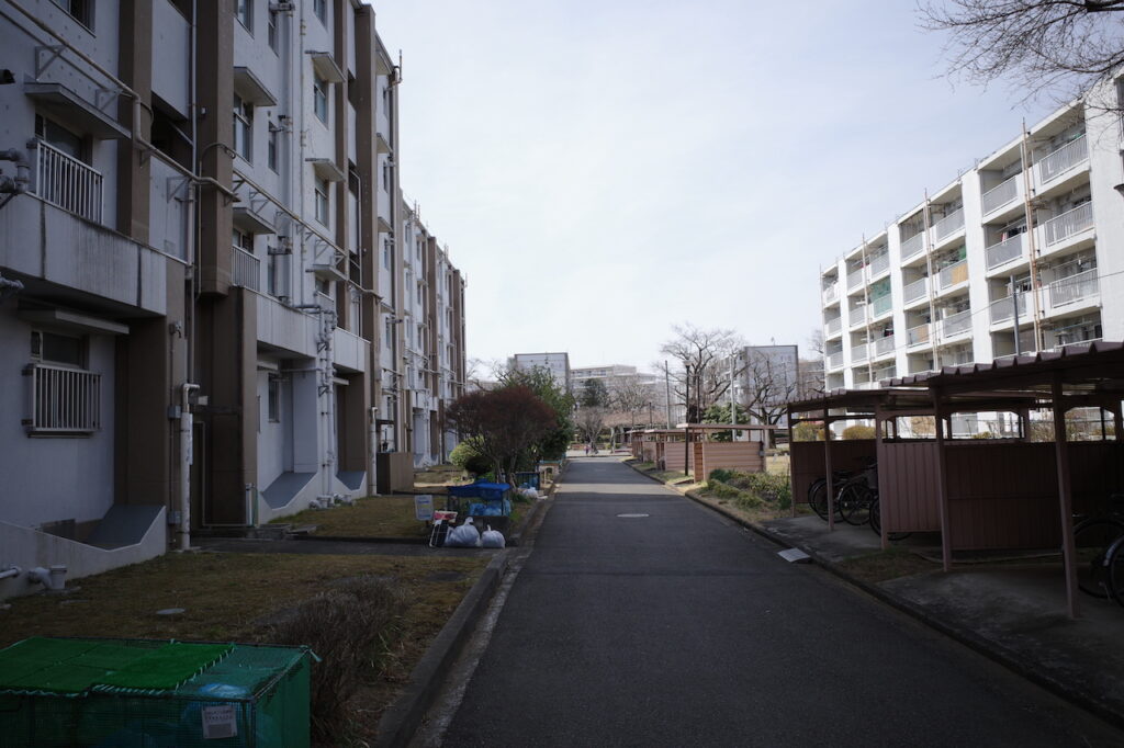 高度経済成長に造成された団地群。50〜60年の年月が過ぎた建物は老朽化も目立つ。