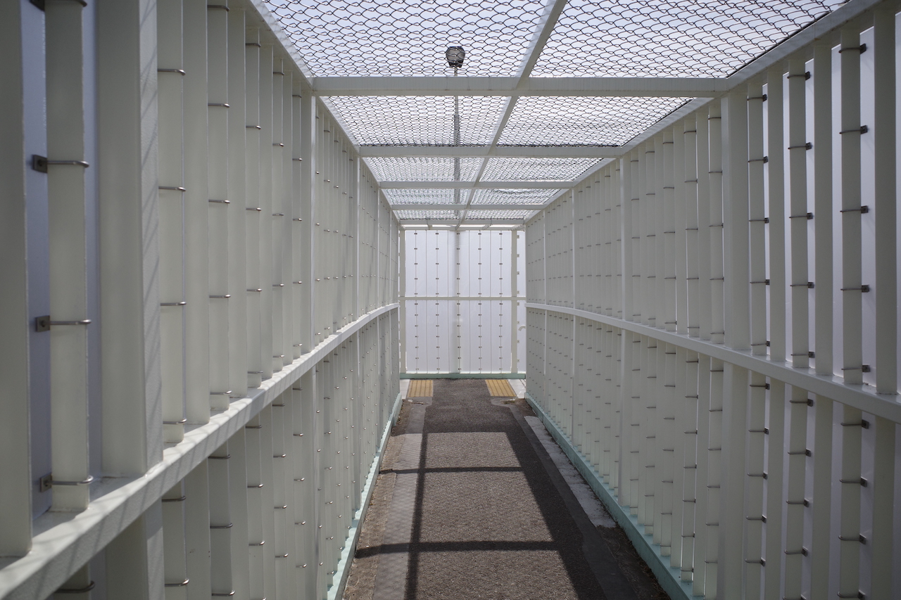 府中九小前歩道橋は、通路が目隠しされている。刑務所の内側は見ちゃいかんものなのだ知らんけど。もちろん受刑者のプライバシー保護もあるだろう。話は飛ぶが、その昔、宮嶋茂樹カメラマン、大倉乾吾カメラマンが小菅の東京拘置所で麻原彰晃の最後の写真を撮影したときも内部は大騒ぎだったと読んだ。刑務所の内側は見ちゃいかんものなのだ知らんけど。